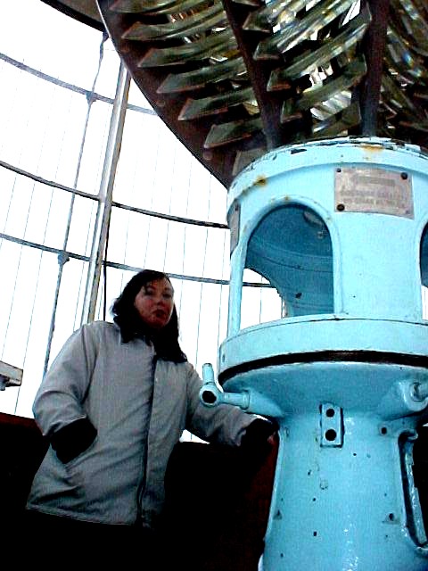 De izquierda a derecha: Punta Dungeness desde el pie del faro Vírgenes. El acantilado con el "fiel centinela austral". La óptica que del faro; prismas de fresnal que amplifican la luz.