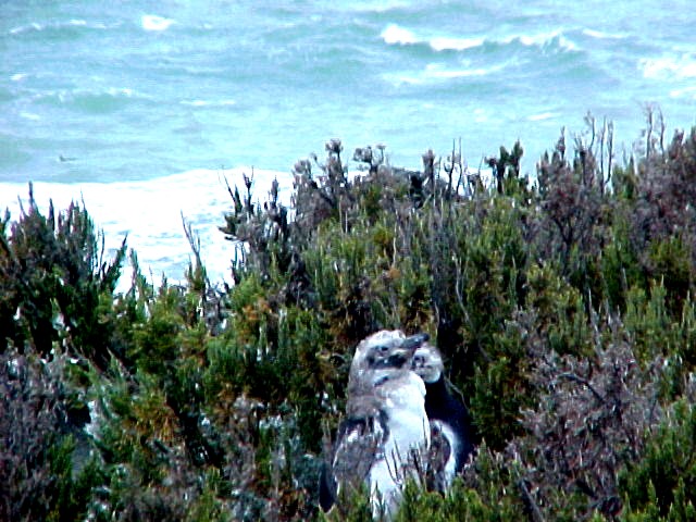 En el verano 150.000de estas graciosas aves, que no vuelan pero que son magníficas nadadoras, acompañan al faro. Desde el faro -y con teleobjetivo- se ve Punta Dungeness, el extremo más meridional de la Argentina continental. La foto de la izquierda es de "Un tour por la patagonia".